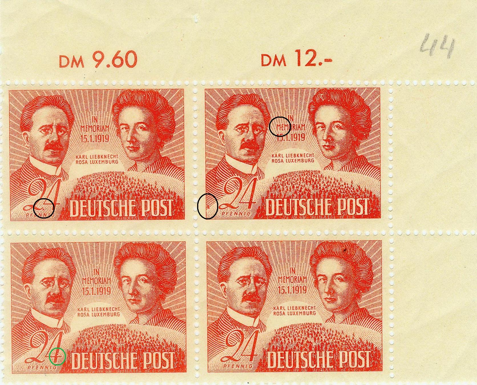 von mir vorgestellten 229 - roter Fleck am linken Markenrand in Höhe des Fußes der 2 und roter Punkt rechts am ersten M von MEMORIAM -