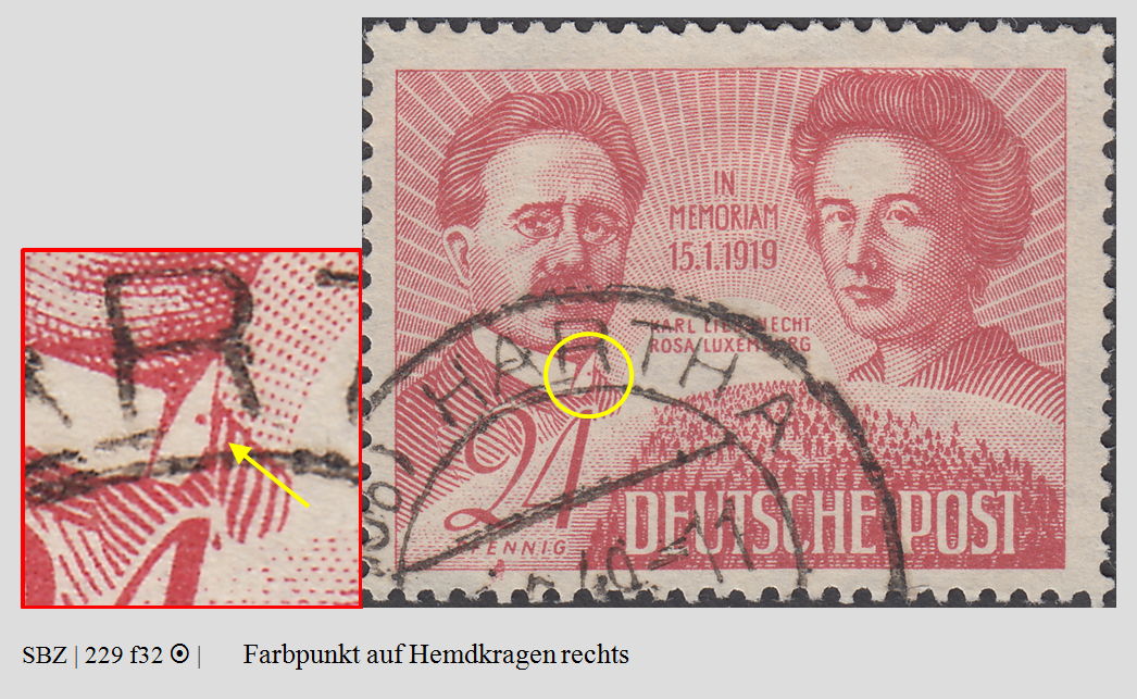SBZ 229 f32 | gest. | Farbpunkt auf Hemdkragen rechts