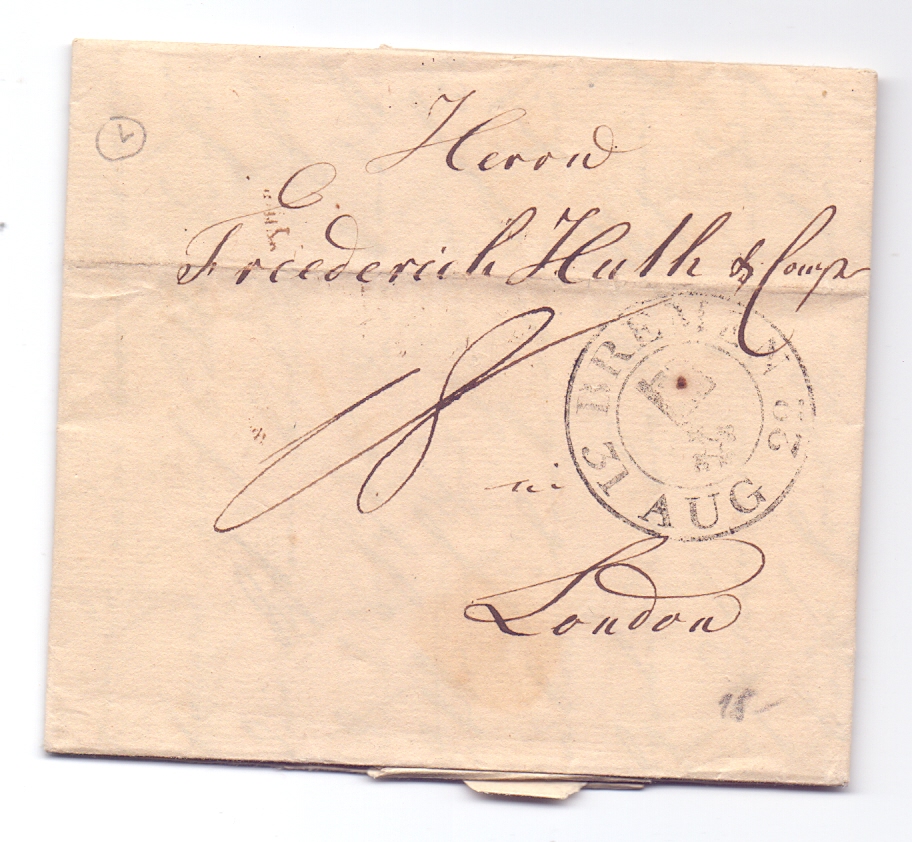 Ein Brief aus Bremen nach Bordeaux aus 1814 mit einem seltenen Stempel sowie dem passenden Attest der Verbandsprüfers James van der Linden (leider nicht in meinem Besitz, Kopie aus dem Netz).