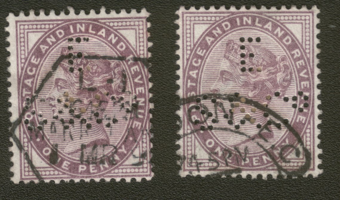 Ja, es gibt teure Perfins. Sog. Dienstlochungen. Bei GB sind es die HMOW oder Krone+ OW. OW= Office of Works- Arbeitsamt. Dann gibt es noch die Dienstlochungen von dem Board of Trade. Perfin ist eine Krone und BT und schließlich das Beschaffungsamt= Stationery Office Perfin: Krone SO oder HMSO.