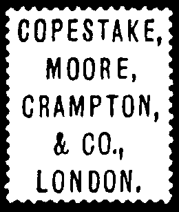 The firm changed its name from Copestake, Moore, Crampton & Co. in 1877. At some other time (still to be established) they were called Copestake, Lindsay, Crampton & Co.