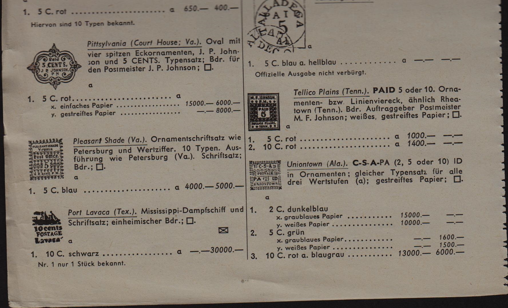 Im Jahre 1999 wurde von der Auktionsfirma Robert S. Siegel eine einzigartige Sammlung von seltenen Postmeister-Ausgaben (insgesamt 158 Lose) aus der Kilbourne Collection versteigert. Das höchste Gebot erzielte eine Marke auf Brief von Mt. Lebanon Nähe Pittsburgh in Pennsylvania mit 350.000,- USD (Los-Nr. 93 auf den Seiten 70-71). Der Ausrufpreis war 100.000,- USD.