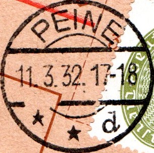 Hier sieht man das die Sterne entfernt (aptiert) wurden. Mir ist bekannt das es ab Mitte 1938 die Anweisung gab sämtliche Sterne aus den Stempeln zu tilgen.