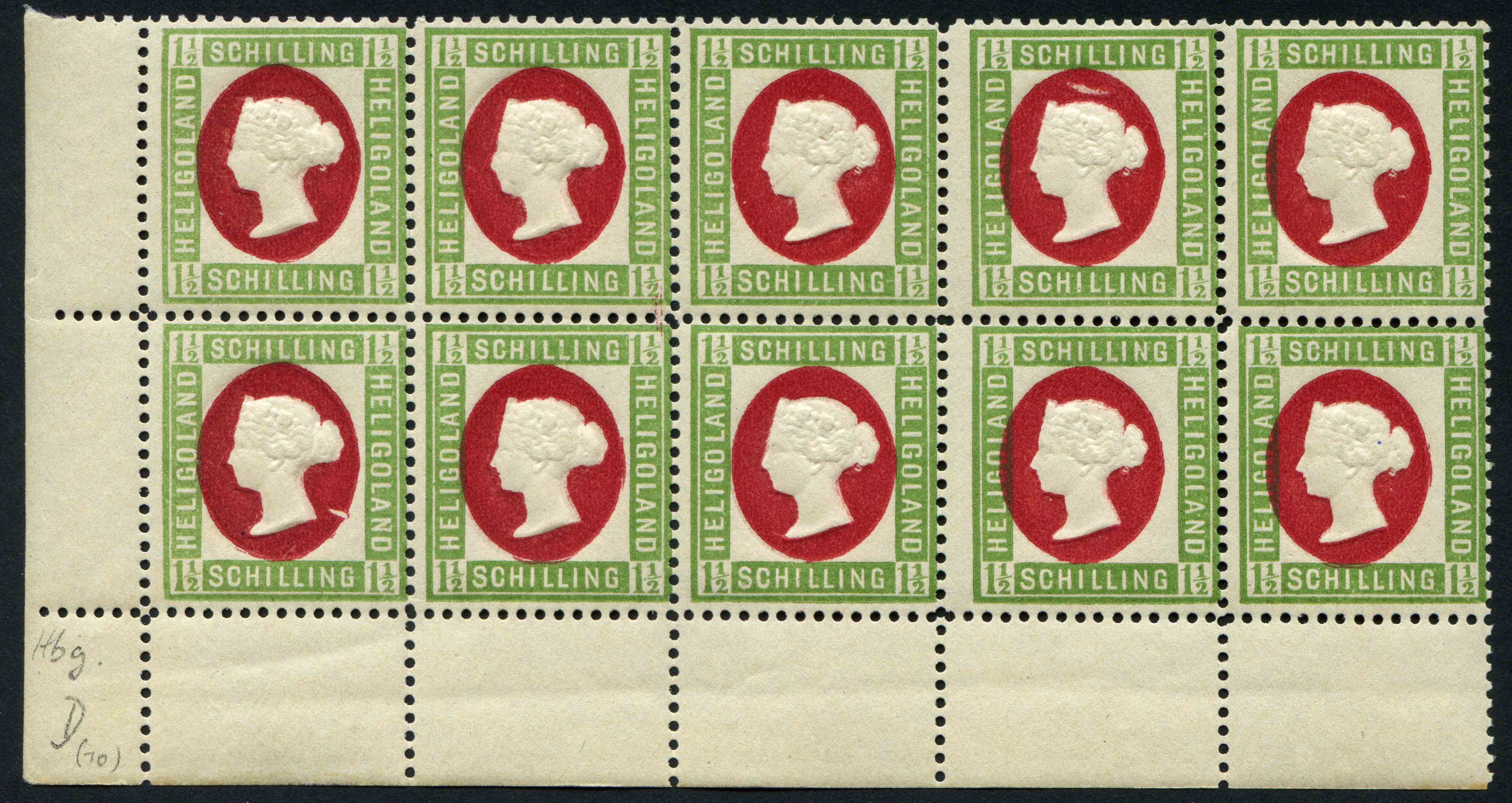 Hier ist so eine - die Michel Nummer 10 aus Helgoland. Im Gegensatz zu den anderen Marken aus der Serie weist der Ovale Druck einen straken Versatz auf und der Victoria Kopf sieht ebenfalls seltsam aus und dann sind da noch die Farb-Flecken am Rand oben rechts. Weiß jemand was es damit auf sich hat?