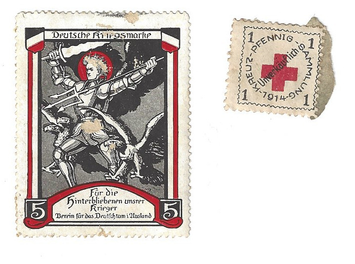 - Kriegsmarken aus dem 1. Weltkrieg (rechts def. links ?) ohne Einheit beim Wert?