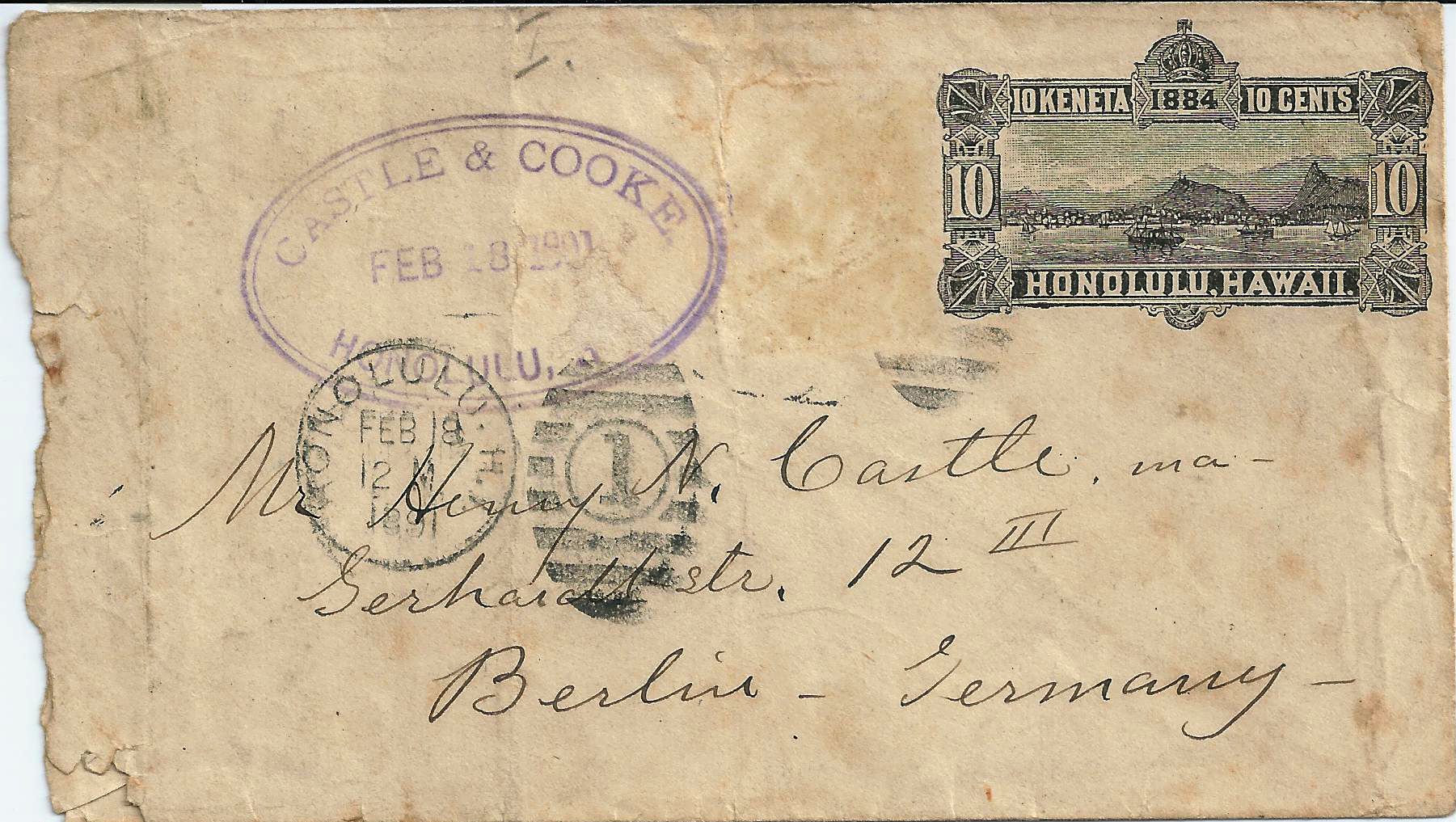 Was bei diesem Brief aus Hawaii passiert ist, weiß ich freilich nicht. Die Gummireste könnten darauf deuten, dass die Zusatzfrankatur über dem Teekessel abgelöst wurde. Aber jedenfalls lässt sich der Laufweg immerhin teilweise nachvollziehen - schätze, das ist ein Beispiel im Sinne von northstar.