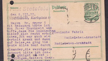 Es freut mich, dass Du das Thema aufgegriffen hast. Ich hoffe, dass sich noch weitere Forumskollegen anschließen. Die gezeigten Beispiele zeigen m.E., dass auch diese Belege interessante Geschichten erzählen können. Hier ein weiteres Beispiel von mir. Eine Ganzsache P140 I vom 3.3.1922 aus Eisenach nach Rudisleben-Arnstadt. Es wurden mindestens vier Briefmarken von dieser Ganzsache abgelöst.