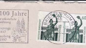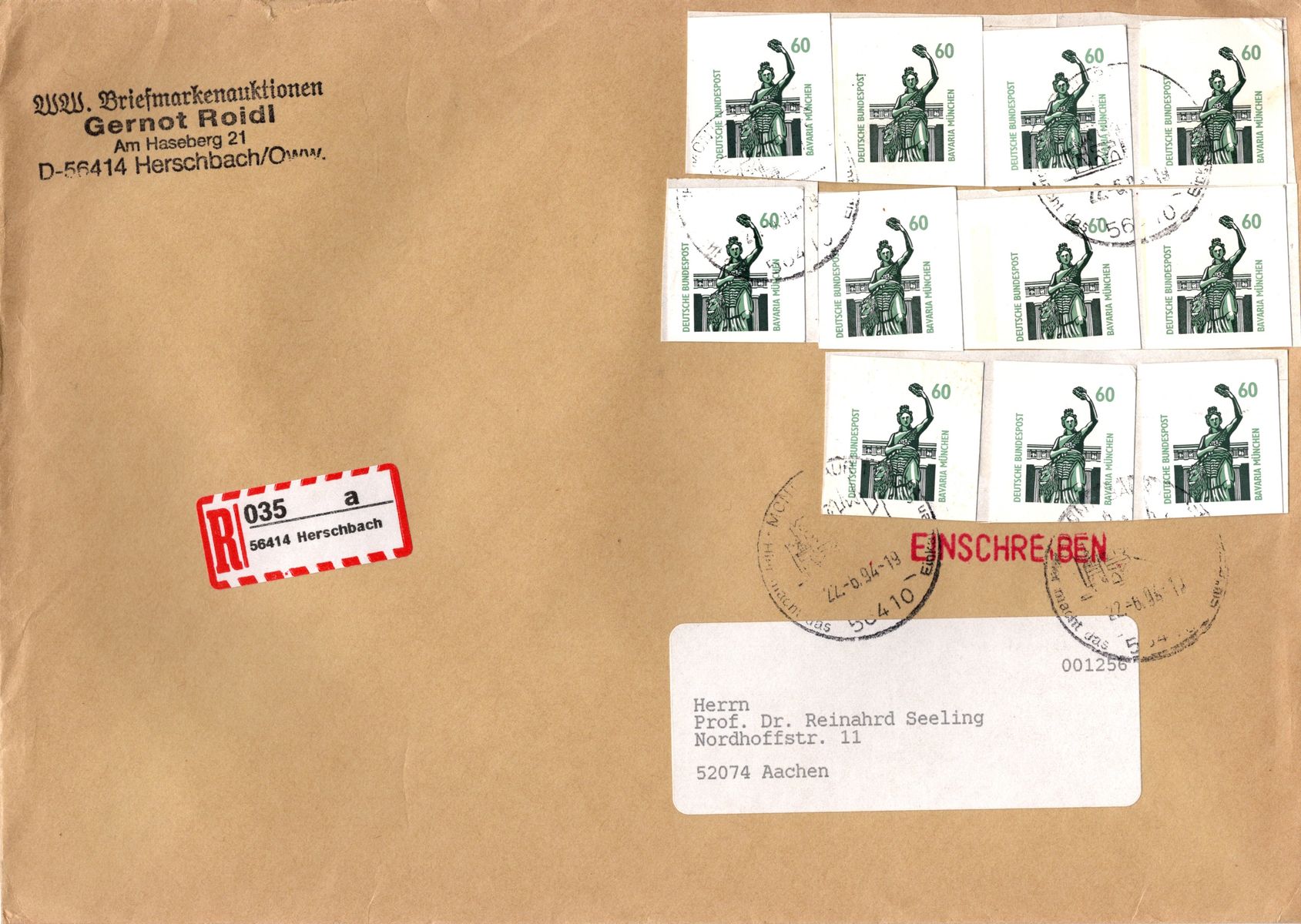 Der Einschreibebrief von 1994 ist um 10 Pfennig überfrankiert.