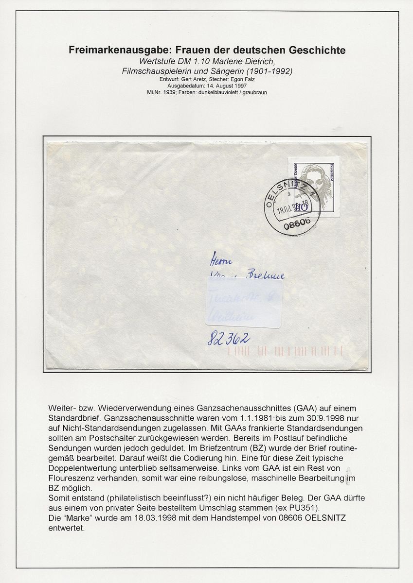 Man kann sich fragen, warum das verboten wurde, denn einen Schaden hat die Post ja nicht davon. Sie hat das Geld fürs Porto bekommen und die Ganzsache ist futsch und braucht nicht mehr von der Post befördert zu werden.