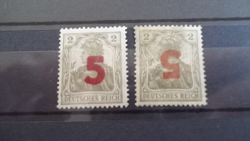 Polen, September 1919. Zweite Aushilfsausgabe für Posen (Poznań). 5 auf 2 Pf, Aufdruck durch Druckerei Kapela. Kopfstehender Aufdruck kommt vor, ist aber selten. Michel-Nummer 135. Dazu gehört noch eine 10 auf 7 1/2 Pfennig mit Aufdruck durch Druckerei Goldberg, Michel-Nummer 136. Zusammen sollen nur 20000 Sätze herausgegeben worden sein. Die Marken sollte man prüfen lassen.