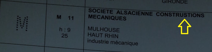 Kleine Schreibkorrektur : Société Alsacienne de Constructions Mécaniques Mulhouse