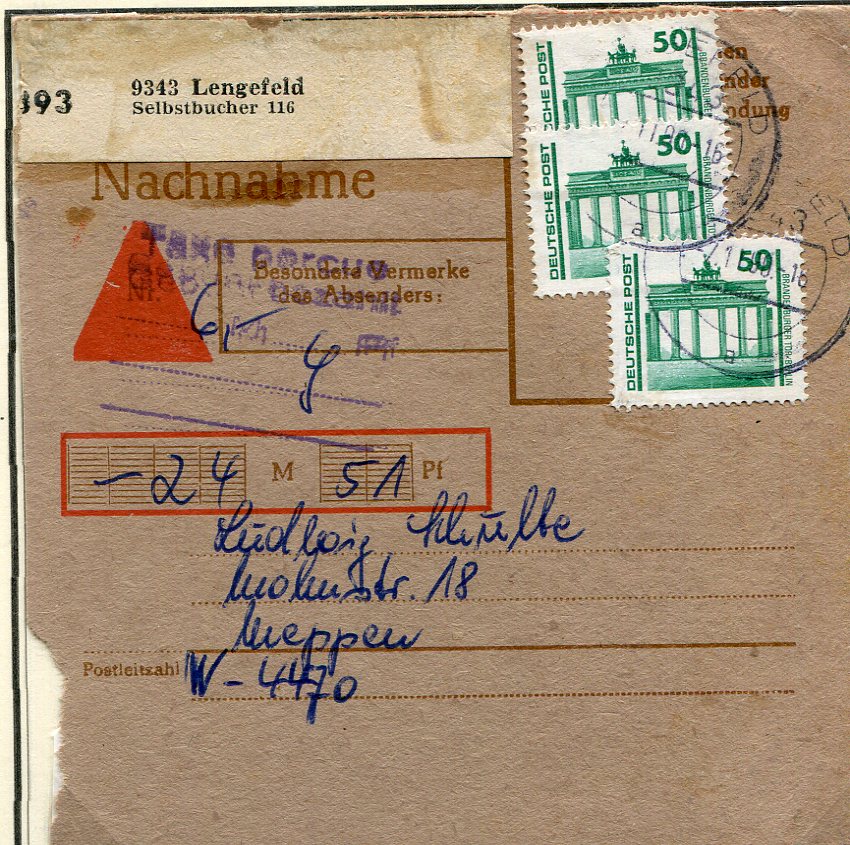 Selbstbucher - Nachnahme Paketsendung über 5 - 10 kg: 6,00 DM, plus Nachnahmegebühr: 1,50 DM. (Gebühr bis 30.06.91). Gesamtgebühr: 7,50 DM.