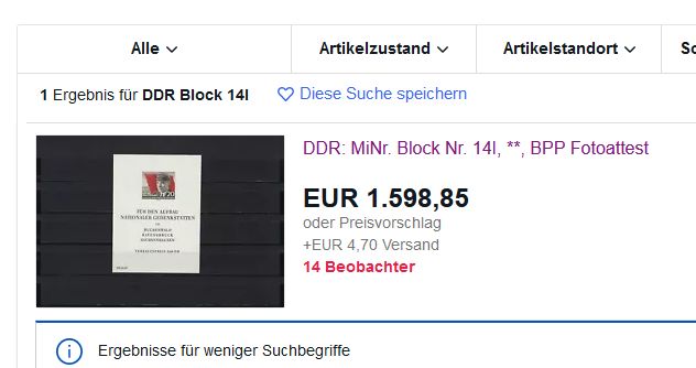 Nun, mir ist auf ebay in 10 Jahren bisher nur ein einziger "unentdeckter" 14I über den Weg gelaufen, den ich mit etwas Glück für einen Zehner abfassen konnte. Etwas Glück gehört eben auch dazu. Da von massenhaft zu reden, scheint mir doch etwas gewagt. Aber bei Interesse, zur Zeit gibts bei ebay wieder einen postfrischen 14I. Für Massenware ein durchaus akzeptabler Preis;).