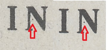 Kaum bemerkbar ist der winzige schwarze Punkt im "N" von "IN", der sich aber anscheinend auf allen Exemplaren des Block 14 I zeigt