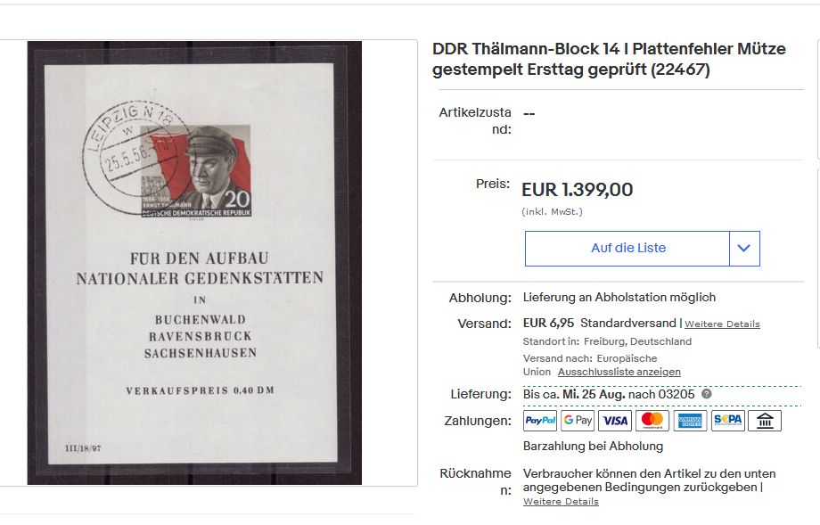 ...Der verfälschte Block 14 I hat für günstige 525 EUR doch tatsächlich einen (hoffentlich informierten) Abnehmer gefunden.