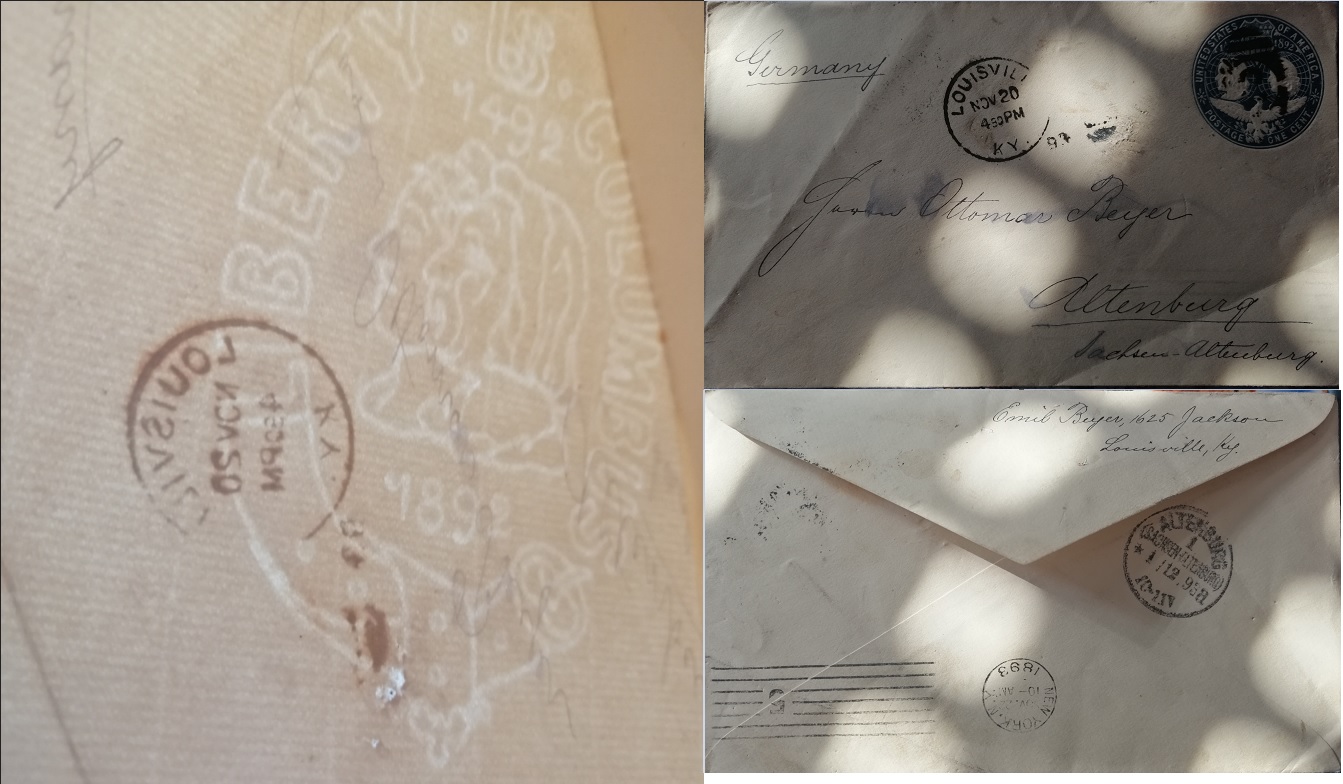 Das Wasserzeichen im Briefumschlag bezieht sich auf die 400-Jahr-Feier der Entdeckungsfahrt von Columbus (1492-1892). Anscheinend ist diese amerikanische Ganzsache damals mit diesem Wz. gedruckt worden. Ich habe 3 ähnliche Ganzsachen-Wertstempel mit anderen Nominalen gefunden. Wenn Dein Wertzeichen-Eindruck blau ist (die Farbe sieht man nicht so gut), ist es der unten links mit einem Cent.