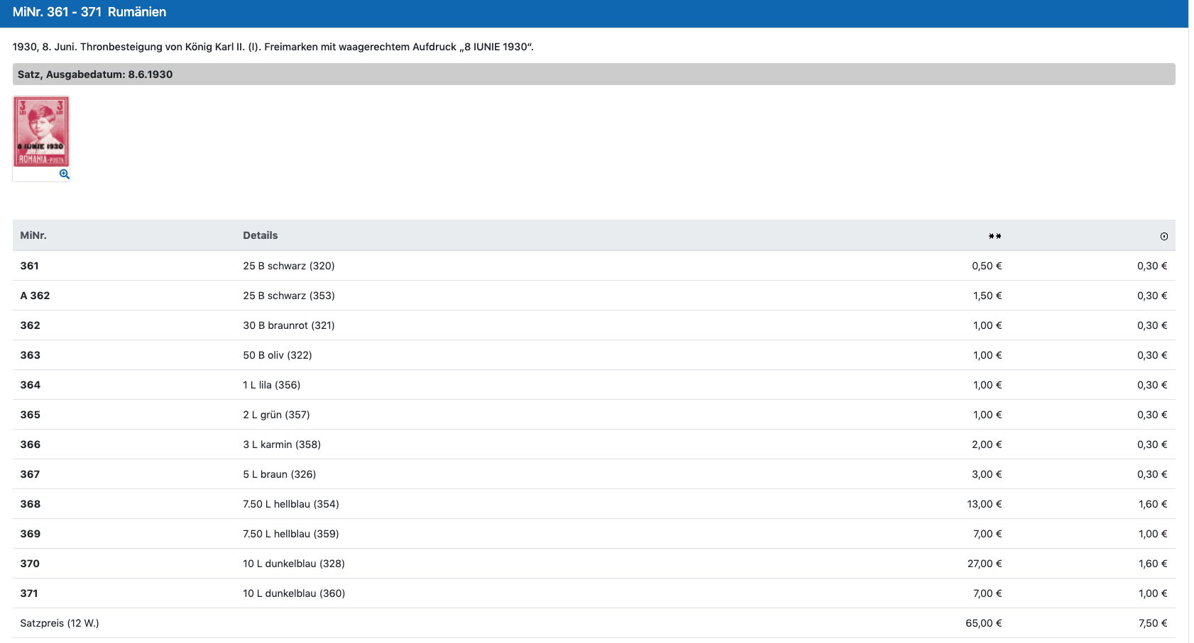 Kein Problem, aber natürlich zeigt die Marke nicht die Thronbesteigung von Carol II., sondern Michael I., der an besagtem Datum von seinem Vater ersetzt wurde.