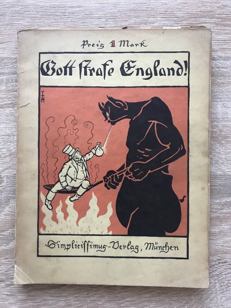 Der Ausruf wurde auf Postkarten, Cinderellas und ähnlichem verwendet. Er wurde von Ernst Lissauer, der einen Haßgesang gegen England verfasste, geprägt. Lissauer und sein „Haßgesang“ fanden Eingang in Stefan Zweigs autobiografisches Werk Die Welt von Gestern.
