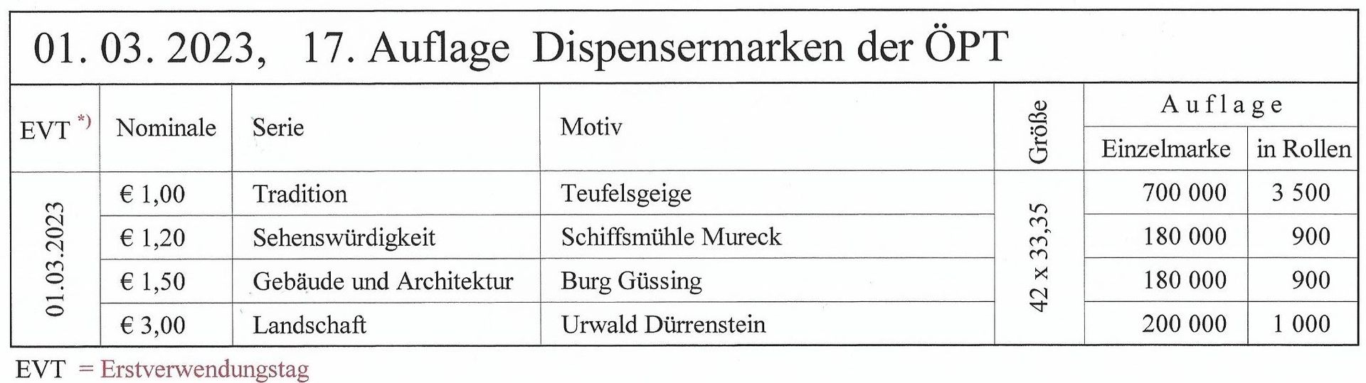 In der Jan/Feb-Ausgabe der "Die Briefmarke" des VÖPh steht zu lesen dass im Februar eine neue Ausgabe der Dispensermarken erfolgt.