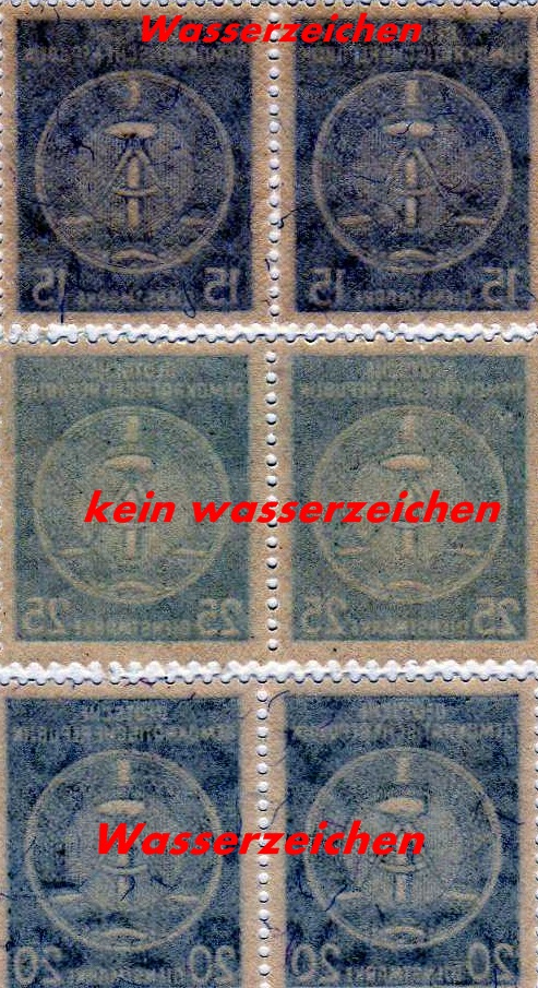 Die Marken haben alle ein Wasserzeichen, es ist nur bei einigen sehr schwach. Das kommt vor bei späten Auflagen und Nachdrucken.