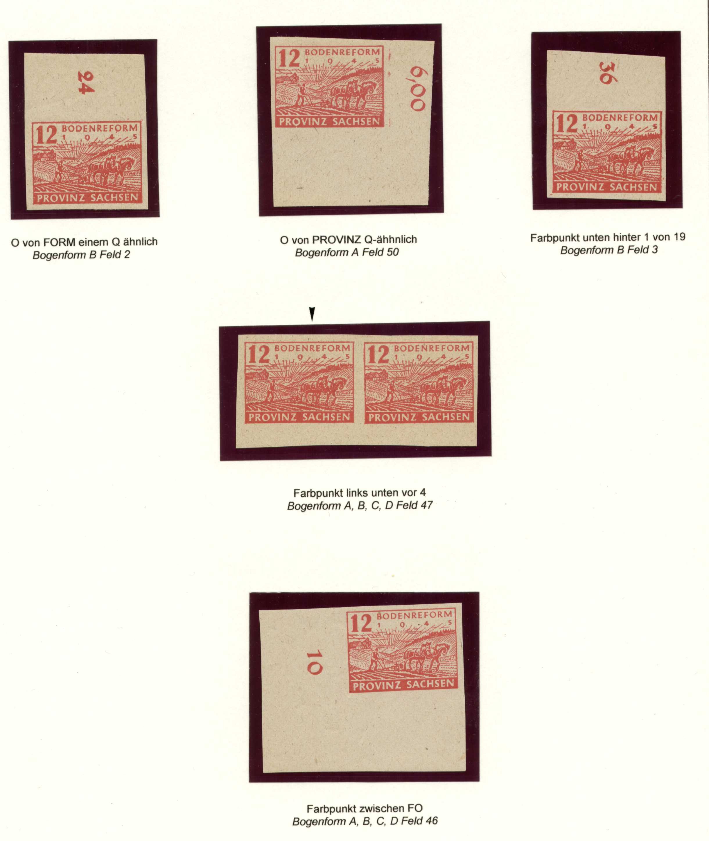 Anschließend und dazu passend dann meine Albenseite mit der MiNr SBZ 86 und allen im MICHEL SPEZIAL aufgeführten Plattenfehlern: