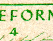 Charakteristisch für diese Feldbestimmung ist auch der Klischeenagelabdruck über dem O von BODENREFORM zwischen Feld 10 und 15.