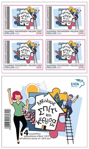 Von Griechenland gibt es noch keine offiziellen Briefmarken zum Corona-Virus, dagegen aber personalisierte: vermutlich 2 Markenheftchen mit je 4 selbstklebenden Marken.