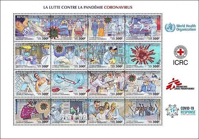 Der Tschad möchte wohl mit dem Corona-Virus so richtig absahnen, philateliemäßig gesehen.