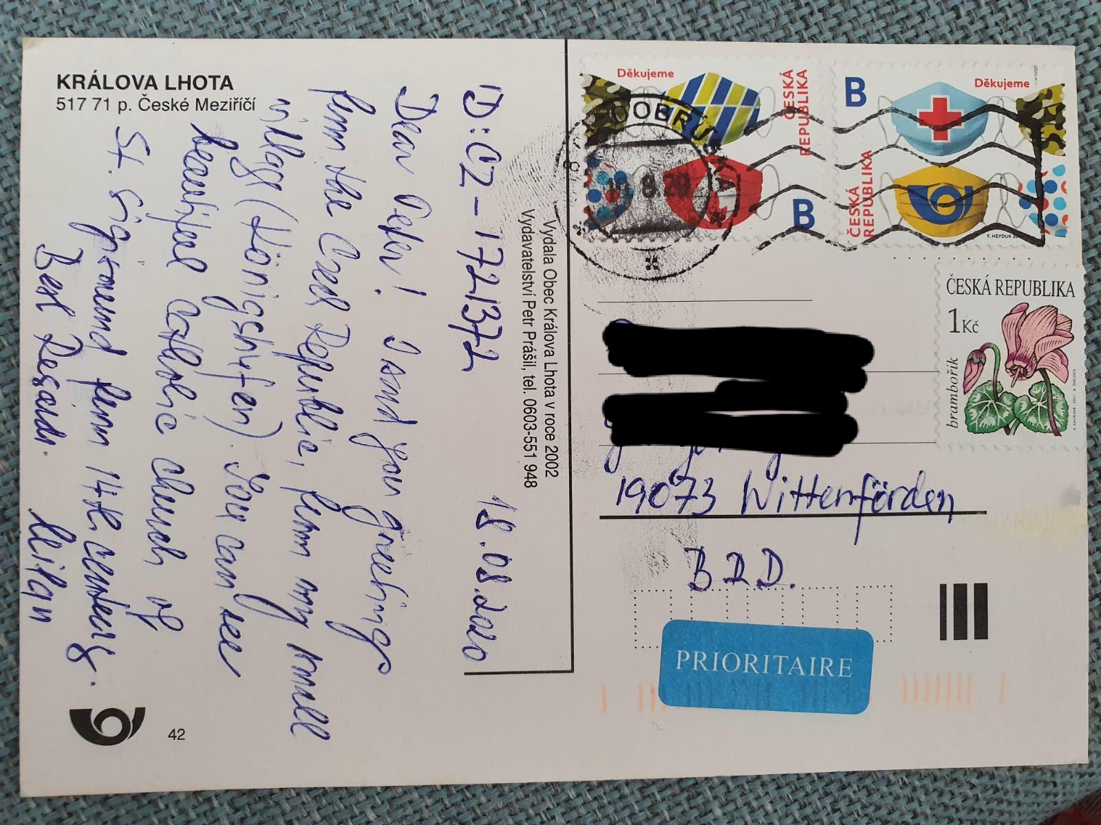 Ich wollte eigentlich diese Corona-Marken auf Karte mit euch teilen, dachte aber schon, dass die Briefmarken nicht neu sind für euch. Ich habe aber nicht schlecht geschaut, als ich gesehen habe, dass es sich um einen Zusammendruck handelt(e). Warum man den trennt und dann verkehrt herum aufklebt, kläre ich noch mit dem Absender:lachen2: