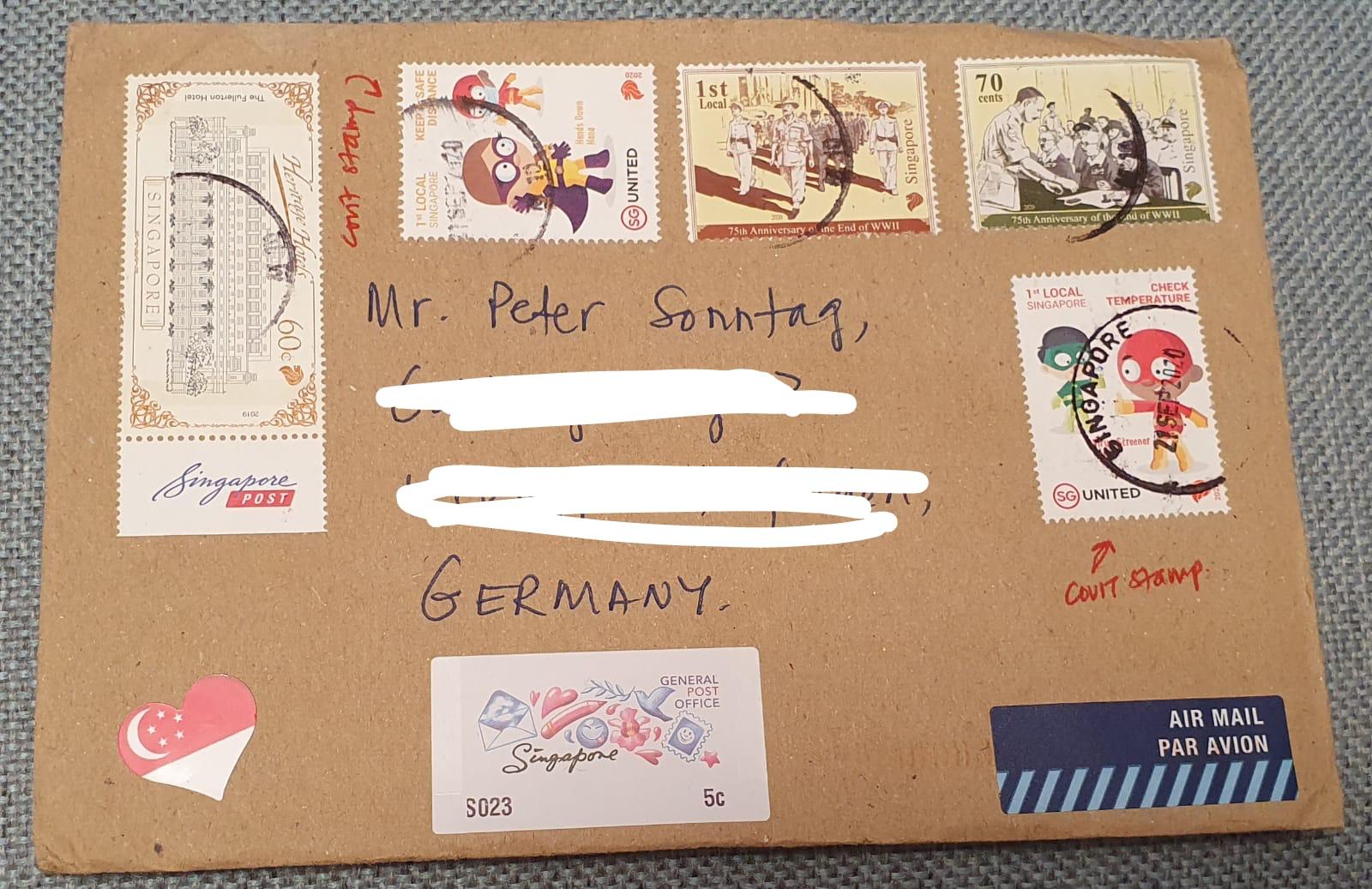 Ich habe heute Post aus Singapur mit zwei Corona-Marken bekommen. Ich glaube, es gibt insgesamt 6 Werte.