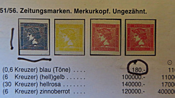 Denn für diese Zeitungsmarke - Merkurkopf blau 0,6 Kreuzer - fand ich auch auf einem Flohmarkt - allerdings bezahlte ich ein wenig mehr als sonst : 20,- Euro !