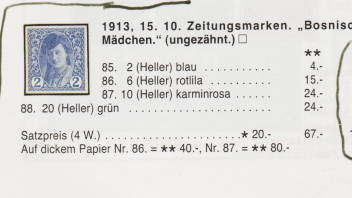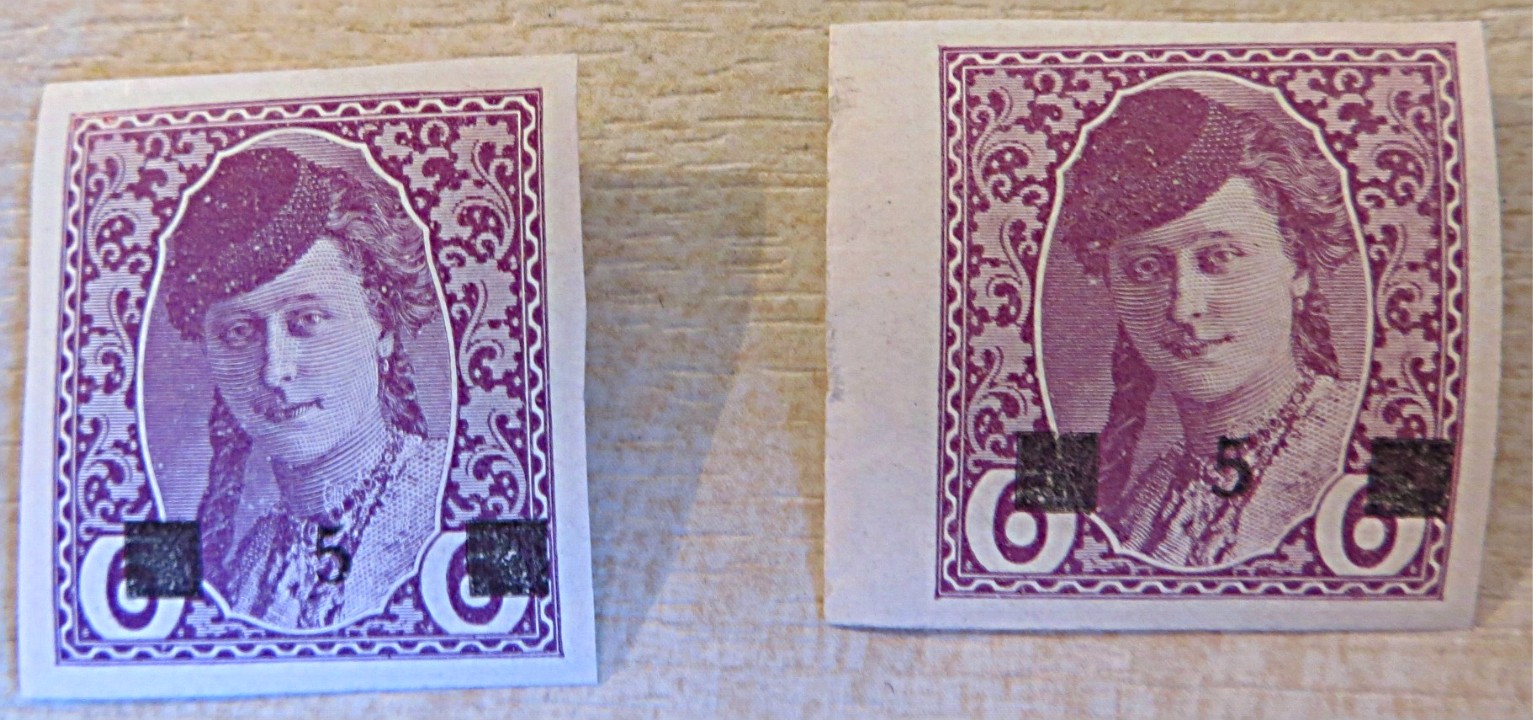 Durch Zufall fand ich aber auch gezähnte "bosnische Mädchen" und zwei Marken mit Wertänderung (ich hoffe das sagt man so?)
