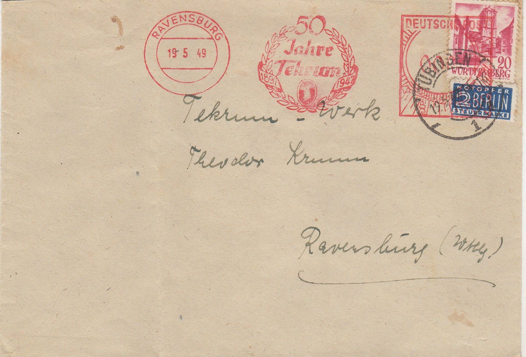 Angedruckt wurde dann die Wertangabe "000" und der Vermerk "Gebühr bezahlt" und auch die Tagesangabe im Ortsstempel wurde 'genullt' - vermutlich weil beim Stempeln nicht das genaue Datum der Posteinlieferung bekannt war.