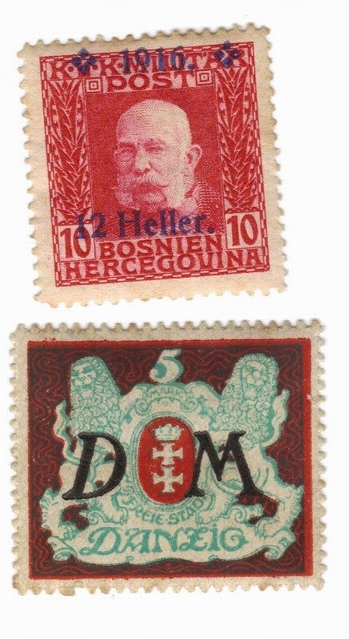 3. Zeile: 1.u.2.: ANK 151 - 0,20 / ANK 144 1908 - 0,10 / ANK 143x 1913 - 2,50 / Rest: Bosnien 1900, schwer zu erkennen, billigste Soorte = Cent-Bereich