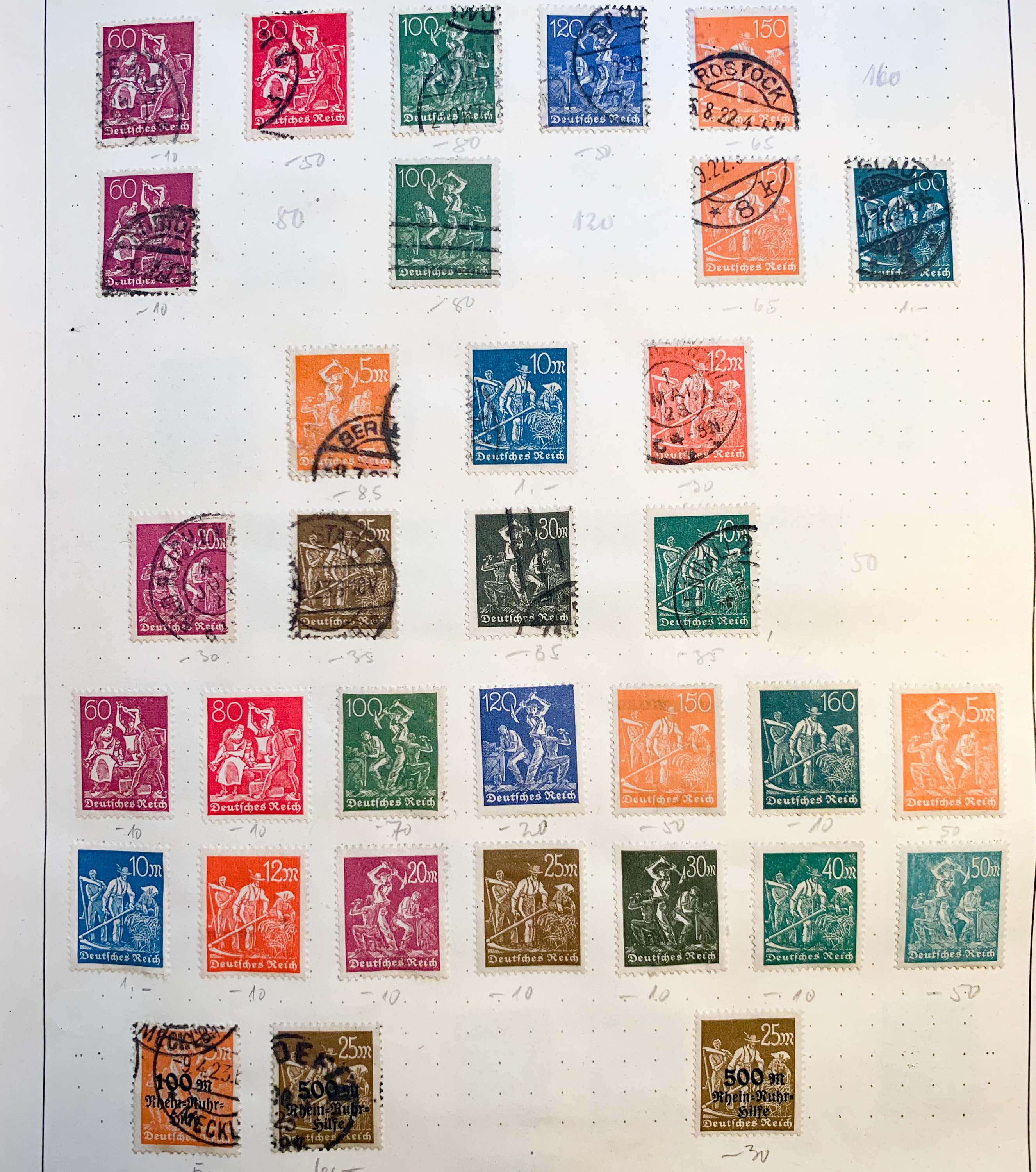 meine Großmutter hat mich gebeten die Sammlung ihres 1985 verstorbenen Mannes zu prüfen und ggf. zu veräussern. Es handelt sich um ein großes Buch mit über 100 Seiten. Es zeige hier erstmal die ersten 9 Seiten und bitte um eine Einschätzung, ob die Marken in Wert und Zustand überhaupt interessant sind. Neben Kaiserreich, Weimarer Republik und der Nazizeit sind auch Marken aus den deutschen Kolonien und verschiedener Länder dabei. Bessere Fotos kann ich bei Bedarf noch nachreichen.