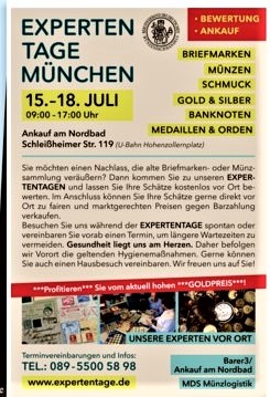 Nachdem Briefmarken-Tauschtage, Börsen und Flohmärkte zum größten Teil noch nicht stattfinden, ist in München 4 Tage lang in Kürze eine Veranstaltung, bei der man auch Briefmarken-Sammlungen schätzen kann. Ob mit oder ohne Mund- und Nasenschutz, steht nicht dabei, ist aber auch egal, man hat sich ja inzwischen daran gewöhnt,