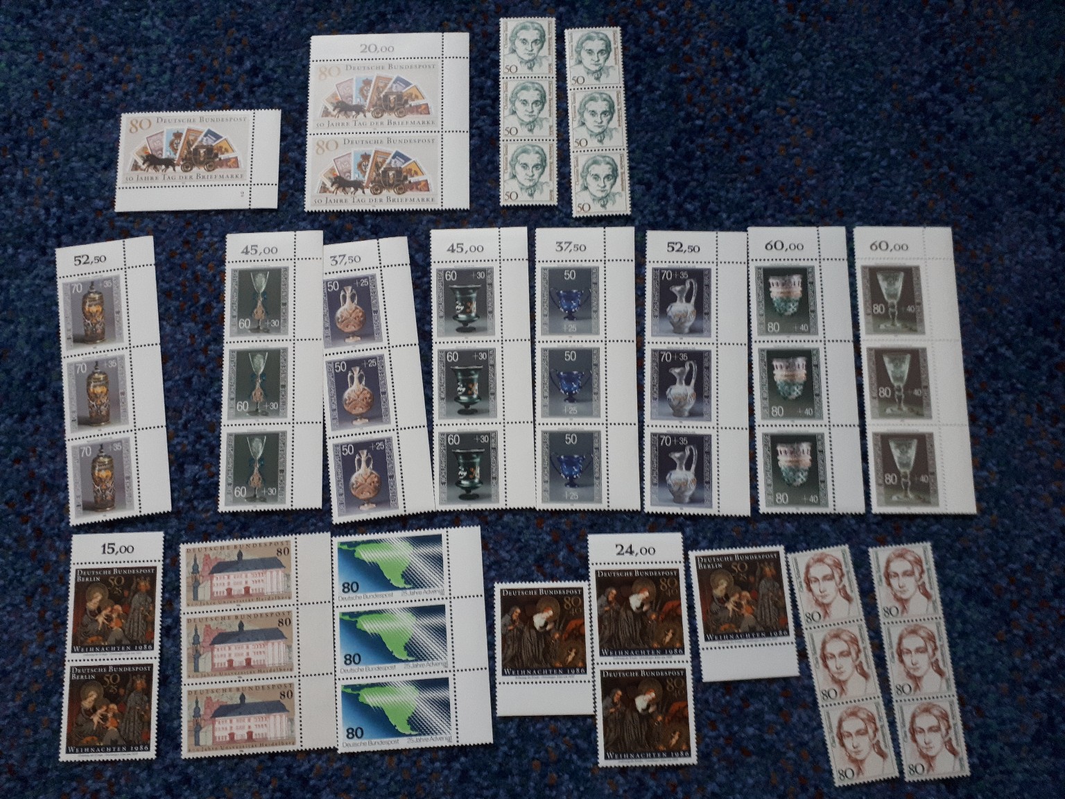 alle Briefmarken, die in Deutschland seit 2001 (etwa) erschienen sind, sind in postfrischem Zustand noch voll frankaturgültig. Der Handelswert liegt bei ca. 75% des Frankaturwerts. Sprich: Für eine Sportmarke mit 145+55 € Postpreis (die 55 cent sind der Zuschlag für die Deutsche Sporthilfe, der zählt bei der Berechnung natürlich nicht mit), kannst Du noch mindestens 1 € Erlös bekommen. Da kommt einiges zusammen.