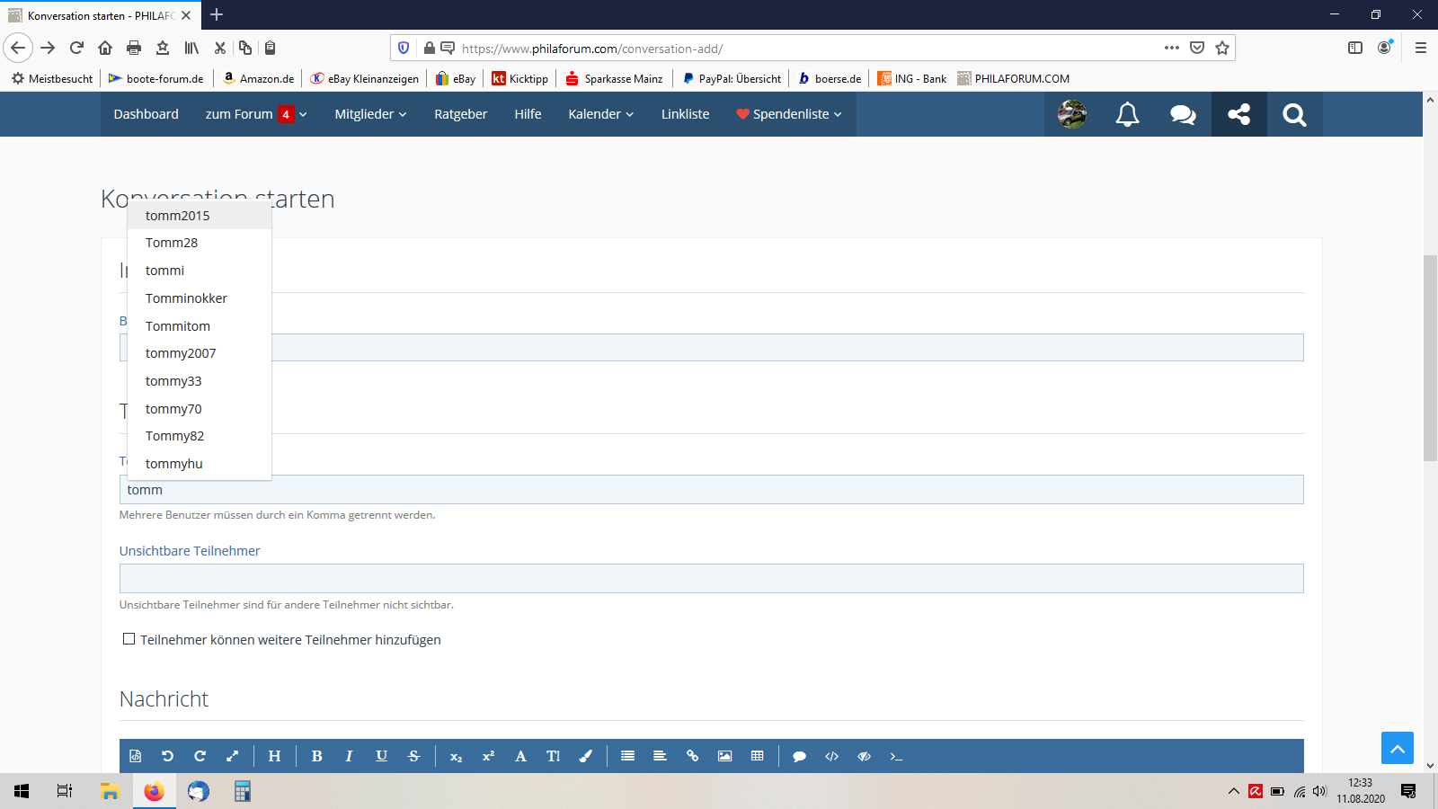 ich schreiben möchte, eingetragen, bekomme beim Abschicken abe nur eine