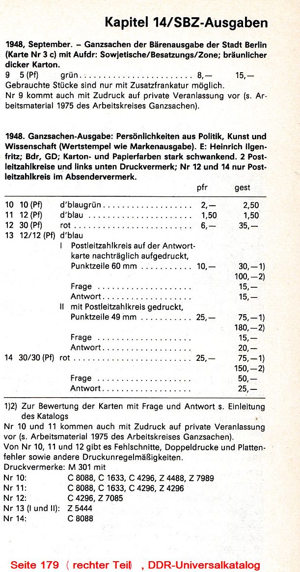 wobei für die Interessierten anzufügen ist, dass nur die M 301 8088 der SBZ zuzurechnen ist. Alle anderen, auch die M 301 Z 7989 wurden erst zu "DDR"-Zeiten verausgabt, werden im Katalog aber unter SBZ aufgeführt. Insofern könnte es sich um einen Beleg-Sammler mit einer eher raren Ausgabe handeln.