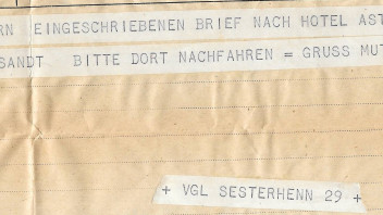 Ich persönlich tippe mal auf folgenden Vorgang: Mama Sesterhenn schickt eine Einschreiben an Sohn Sesterhenn in Lemberg - leider an das falsche Hotel Astoria.