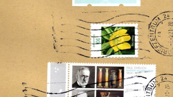 Was ich besonders schön fand, ein Beleg mit neuem blauen Stempel (5.2.21) und alter Marke aus den Euro-Anfängen 2001 (Mi.2188)