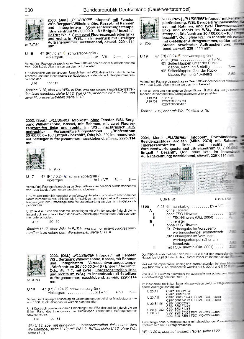 U20 und U22 sind beide mit Briefzentrum 30 katalogisiert. Außerdem fehlen bei mir Fluoreszenzstreifen. Kann mir jemand helfen?