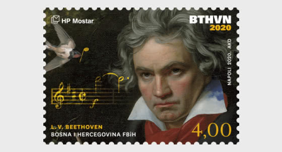 Bei diesem ehemaligen jugoslawischen Land, das durch den Krieg zerrissen wurde, haben sich vor ein paar Jahren 3 verschiedene Postdienste herausgefiltert, die ihren Sitz in verschiedenen Städten haben: Sarajewo für die Muslime, Banja Luka für die Serben und Mostar für die Kroaten. Manchmal sind die Marken nicht so einfach zuzuordnen, habe hier mal die 3 Ausgaben zum 250. Geburtstag von Ludwig van Beethoven gegenübergestellt:
