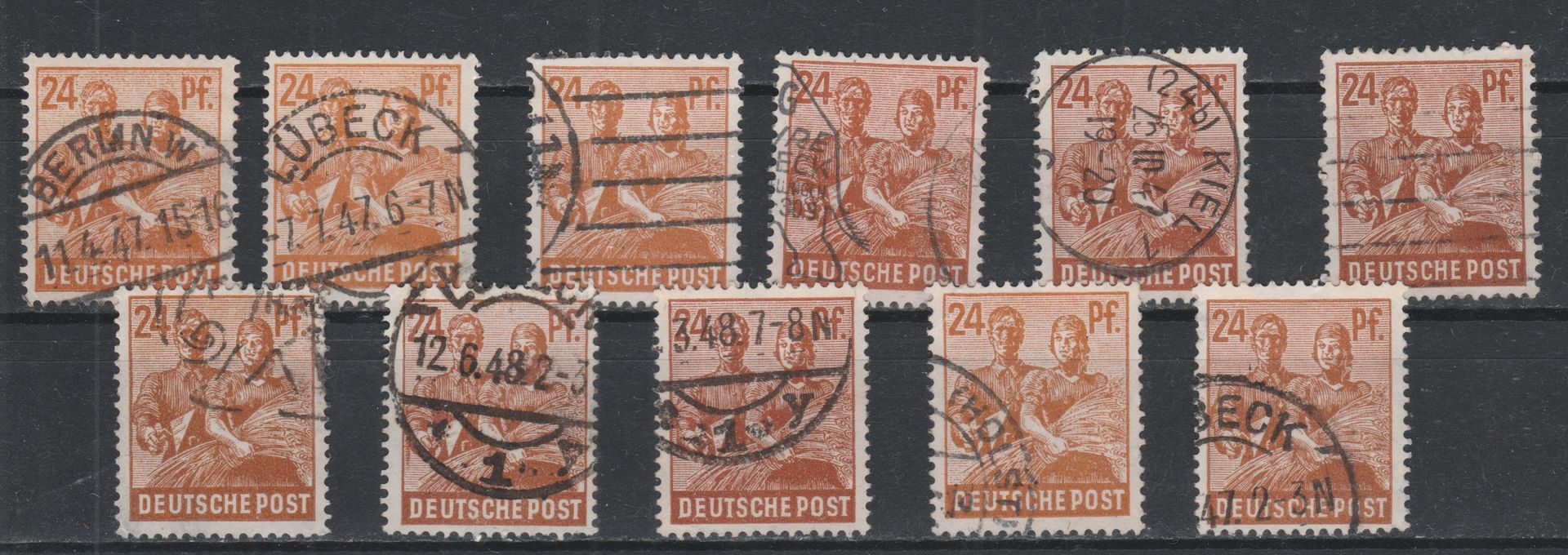 Nach der Vorrede hat m.E. die letzte Marke zu 16 Rpf Chancen auf eine c-Farbe und evtl. die ersten drei und die vorletzte Marke zu 24 Rpf leichte Chancen auf eine b-Farbe.