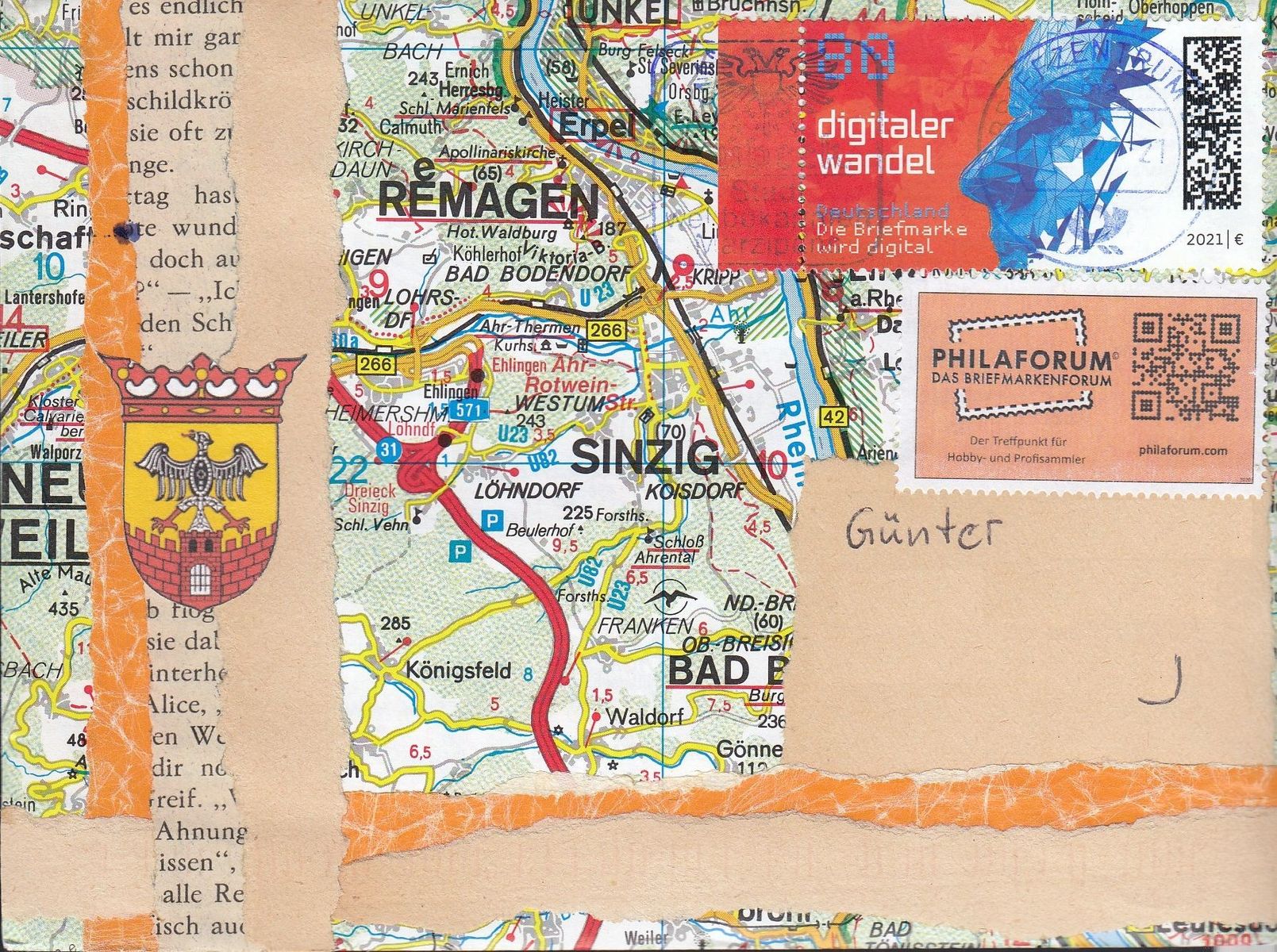 Aber die richtige Briefmarke ist wohl abgefallen? Da war vielleicht der Untergrund zu glatt, da kommt so was vor.