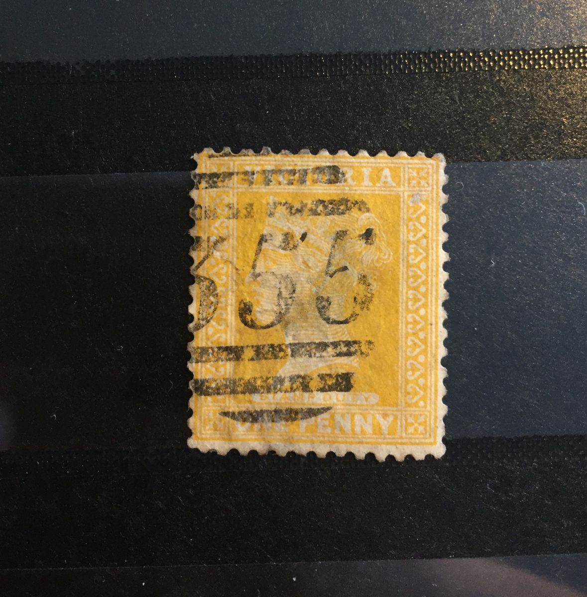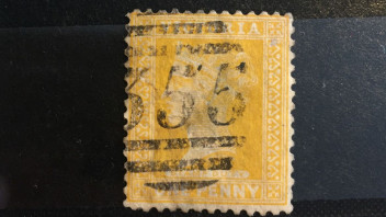 kann mir jemand bei dieser Marke weiterhelfen? Mit Farbbestimmung bei Marken habe ich noch so meine Probleme. Leider habe ich keinen vernünftigen Australien-Katalog und kann daher diesen Penny nur in Orange-Braun, Bräunlich-Rot und Rosa-Rot finden. Welcher der Farben entspricht mein Exemplar? Hinzu kommt eine unfassbar schlechte Erhaltung und ein Stempel und eine Zahl (?) auf der Rückseite, was hat es damit auf sich?