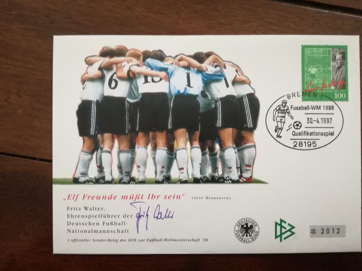 Also für den von gawan gezeigten Beleg könnte man m.E. ruhig mal 3-4 € Handelswert ansetzen. Trotz der mit ziemlicher Sicherheit lediglich aufgedruckten Unterschrift von Fritze Walter.