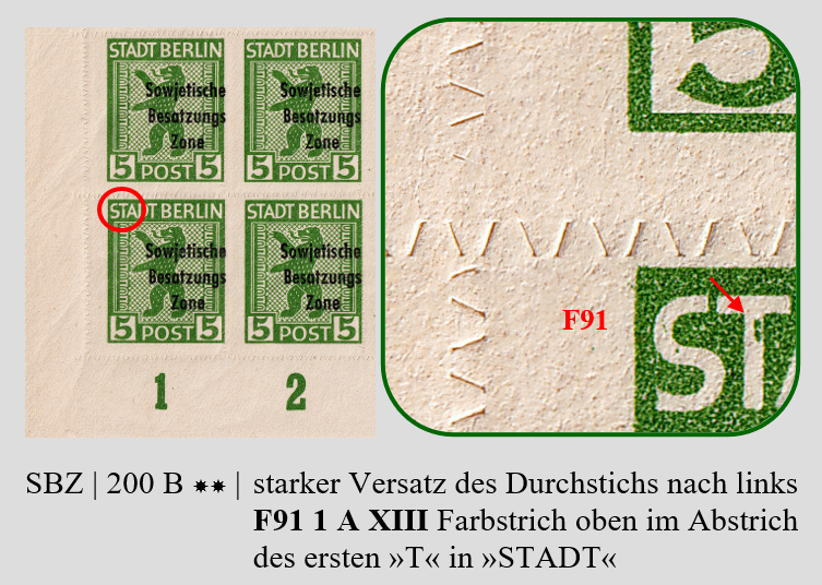 F91 1 A XIII Farbstrich oben im Abstrich des ersten »T« in »STADT«