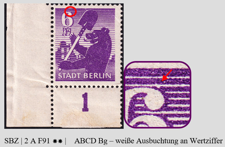 SBZ | 2 A F91 ** | ABCD Bg – weiße Ausbuchtung an Wertziffer
