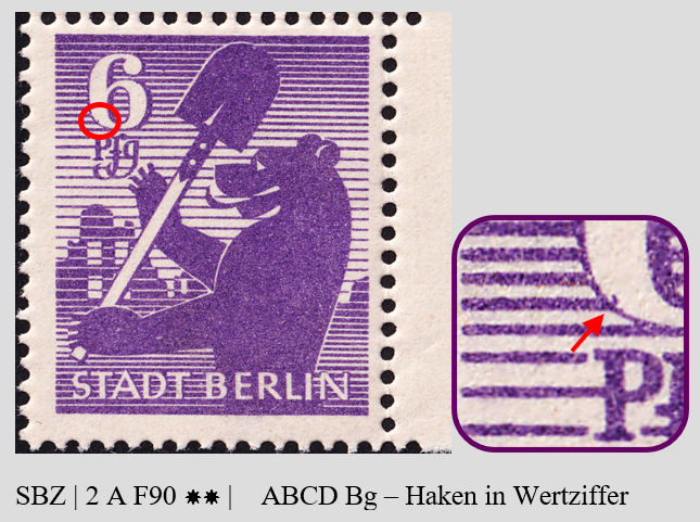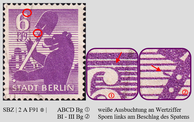 SBZ | 2 A F91 ** | ABCD Bg – weiße Ausbuchtung an Wertziffer
